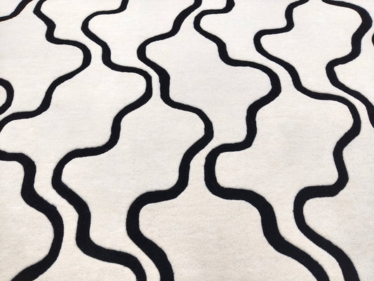 White and Black Wavy Line Area Rug – Modern Hand-Tufted Wool Carpet with Abstract Pattern for Living Room, Bedroom & Contemporary Home Décor