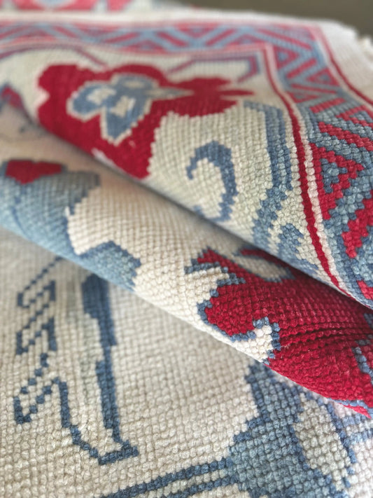 Hand-Knotted Oushak Rug – Turkish Wool Area Rug in Blue & Ivory | Vintage-Inspired Oriental Carpet for Living Room
