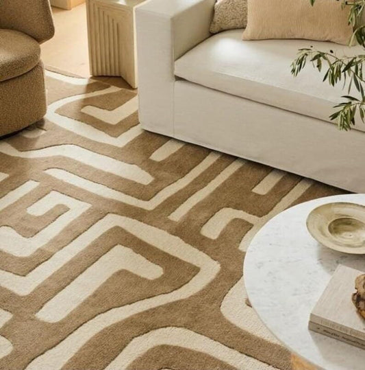 Handcrafted Super Soft Microfiber Shaggy Brown Beige Ivory Wave Shape Carpet