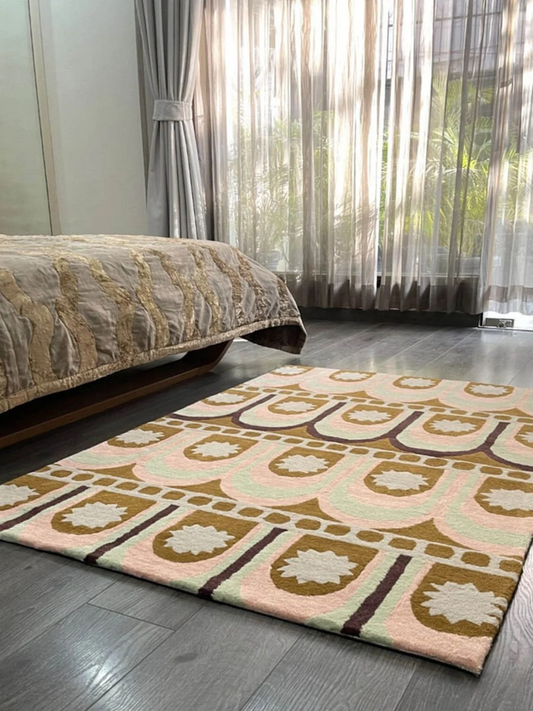 Handcrafted Super Soft Microfiber Shaggy Beige Ivory Cross Mixture Shape Carpet