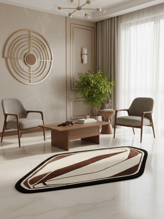 Organic Abstract Hand Tufted Rug – Ivory & Brown Modern Designer Area Rug