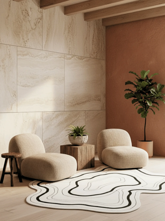 Organic Abstract Hand Tufted Rug – Black & Ivory Modern Designer Area Rug