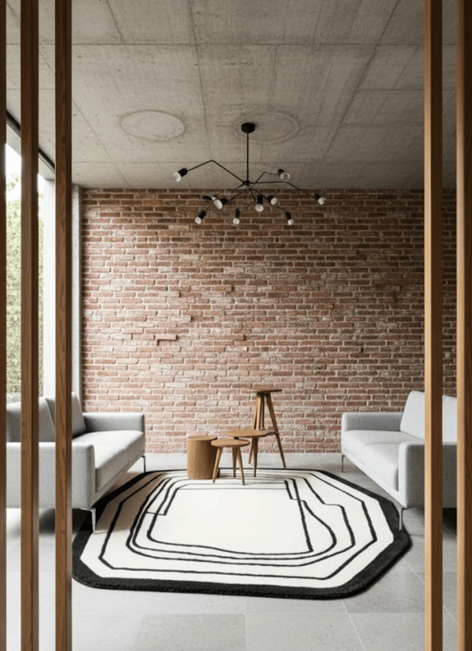 Modern Abstract Hand Tufted Rug – Black & Ivory Minimalist Designer Carpet for Living Room