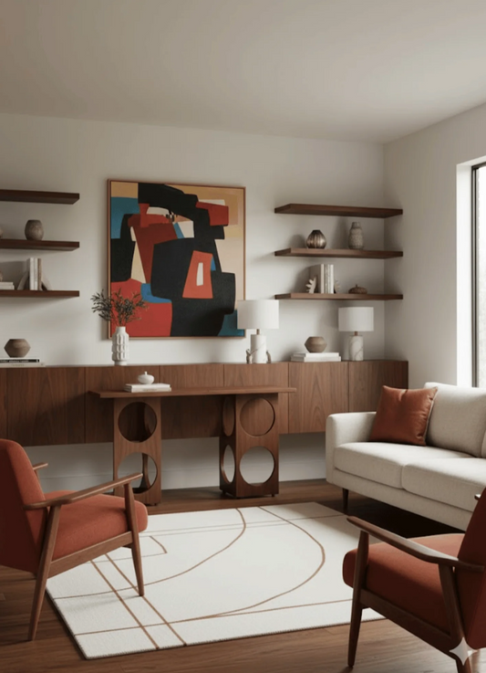 Modern Geometric Hand Tufted Rug – Rust & Beige Abstract Designer Area Carpet