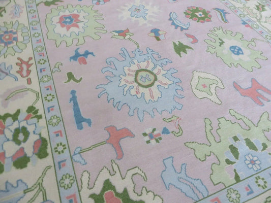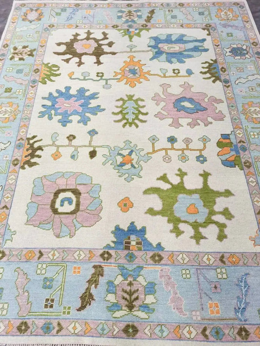 Hand Knotted Oushak Rug – Vintage Turkish Style Area Carpet, Soft Pastel Colors, Boho Home Décor, Handmade Wool Rug