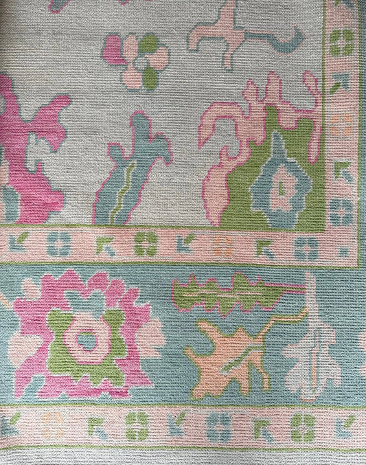 Hand Knotted Oushak Rug | Vintage Turkish Design | Soft Pastel Colors | Boho Farmhouse Decor
