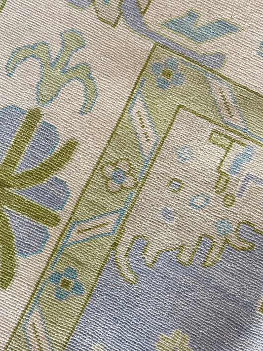 Hand-Knotted Oushak Rug – Pastel Floral Turkish Oushak Carpet, Soft Vintage Wool Area Rug for Living Room, Bedroom & Luxury Interiors