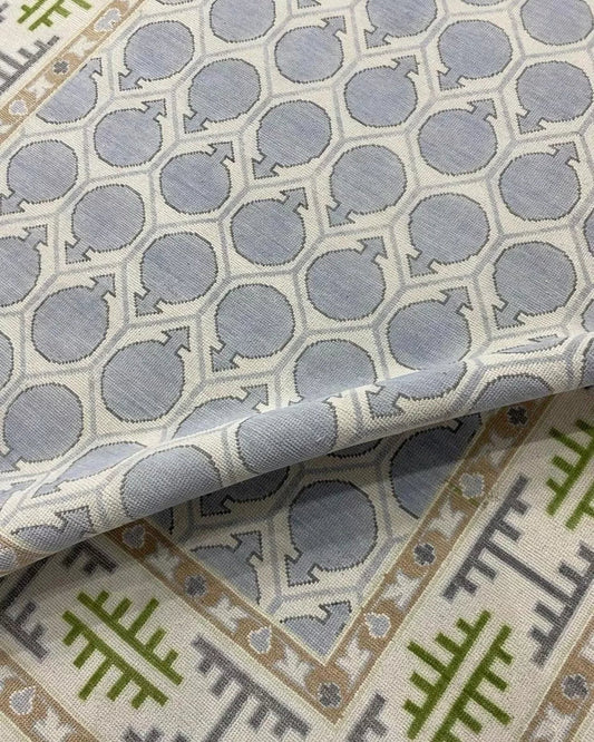 Handknotted Oushak Rug | Soft Blue & Neutral Geometric Turkish Design | Modern Farmhouse & Boho Area Carpet | Durable Wool Living Room Rug