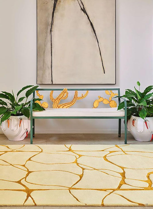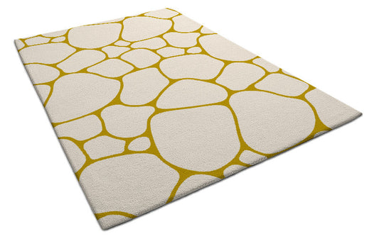 Beige and Mustard Yellow Pebble Pattern Rug – Modern Geometric Carpet for Living Room, Bedroom & Home Décor