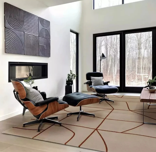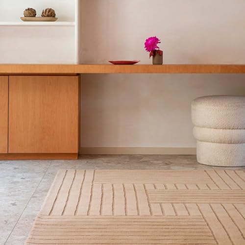 Beige Geometric Modern Rug – Minimalist Textured Carpet for Living Room, Bedroom & Office Décor