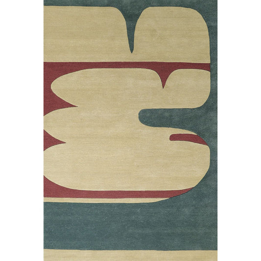 Abstract Modern Area Rug – Hand Tufted Wool Carpet in Beige, Green & Red | Contemporary Artistic Living Room & Bedroom Decor