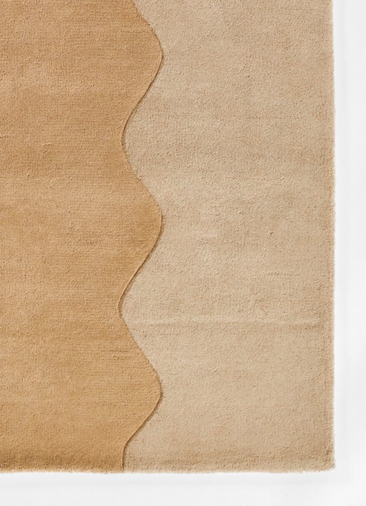 Beige & Tan Wave Edge Modern Area Rug – Minimalist Contemporary Carpet for Living Room, Bedroom & Office Décor