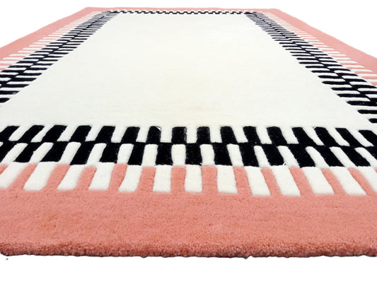 Pink Border Area Rug with Black and White Geometric Frame – Modern Hand-Tufted Wool Carpet for Living Room, Bedroom & Contemporary Home Décor
