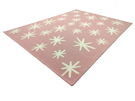 Pink Area Rug with White Starburst Pattern – Modern Hand-Tufted Wool Carpet for Living Room, Bedroom & Playroom Décor