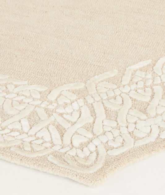 Neutral Wool Blend Tufted Area Rug – Elegant Shaped Design with Intricate Border, Soft & Durable for Living Room, Bedroom, or Entryway