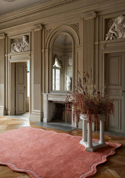 Peach Wavy Border Area Rug – Modern Minimalist Aesthetic Carpet for Living Room, Bedroom & Home Décor