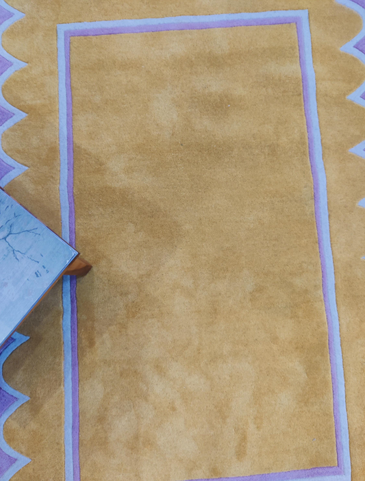 Mustard Yellow Rug with Purple Border | Handmade Wool Carpet for Modern Living Room, Bedroom & Home Décor