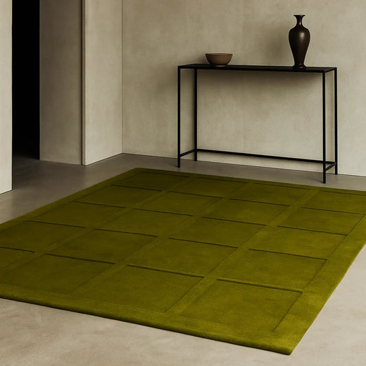 Olive Green Grid Area Rug – Modern Geometric Carpet for Living Room, Bedroom & Contemporary Home Décor