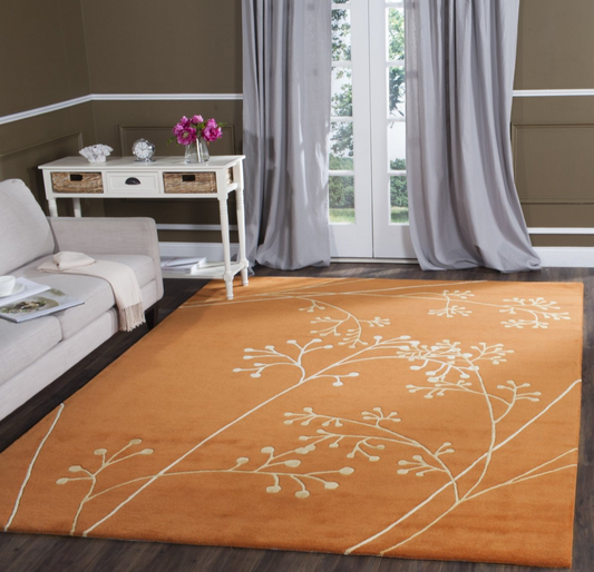 Orange Floral Area Rug with Cream Botanical Vine Design – Modern Soft Carpet for Living Room, Bedroom & Home Décor
