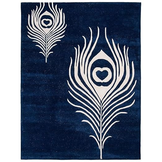 Navy Blue Peacock Feather Rug – Elegant Modern Carpet for Living Room, Bedroom & Home Décor