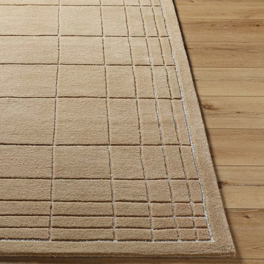 Premium Hand-Tufted Beige Wool Area Rug | Subtle Grid Pattern for Elegant Living & Dining Rooms