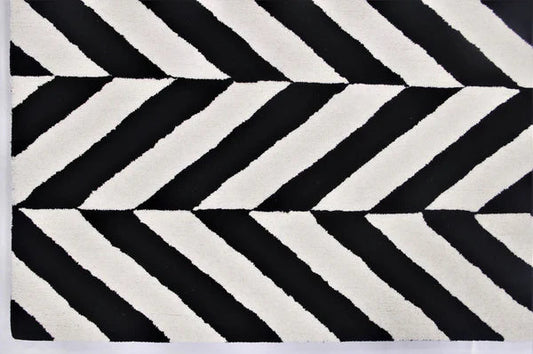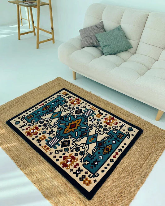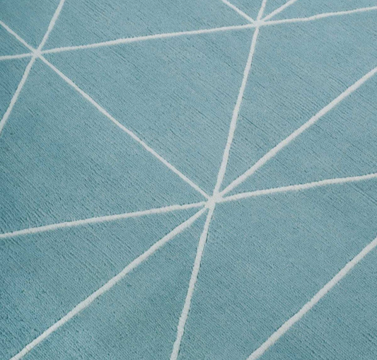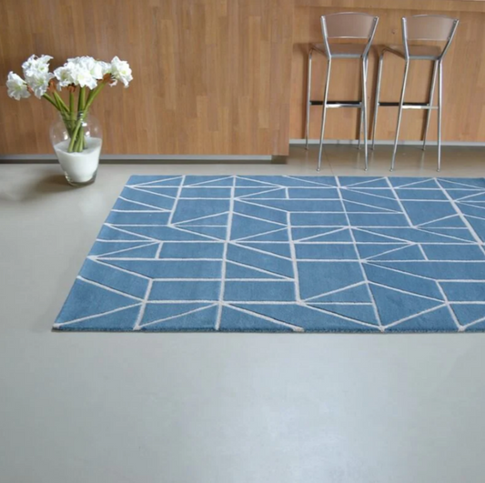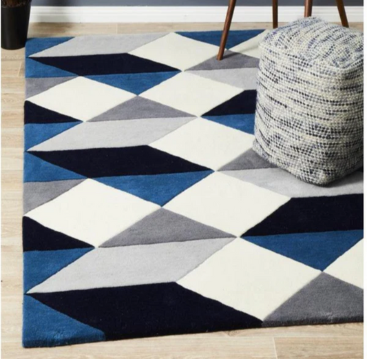 Blue Geometric Hand-Tufted Wool Rug – Contemporary Area Carpet for Living Room, Bedroom & Office Décor