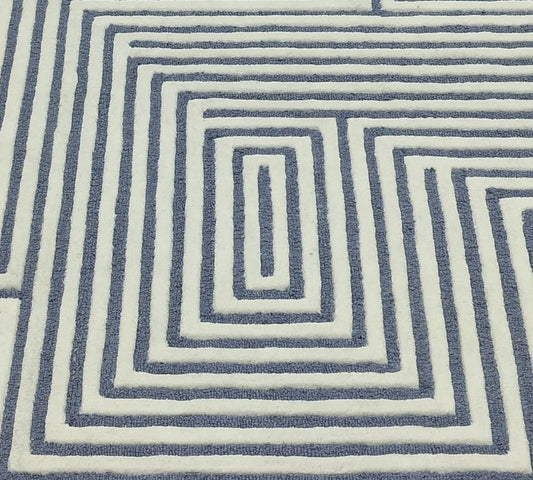 Blue and White Maze Pattern Area Rug – Modern Hand-Tufted Wool Carpet with Geometric Line Design for Living Room, Bedroom & Contemporary Décor