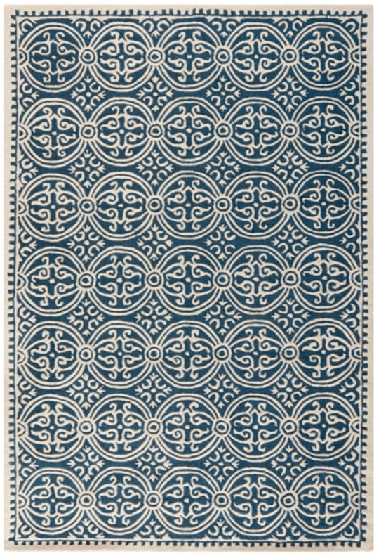 Blue & Ivory Area Rug with Bold Geometric Medallion Pattern – Modern Woven Carpet for Living Room, Bedroom & Home Décor
