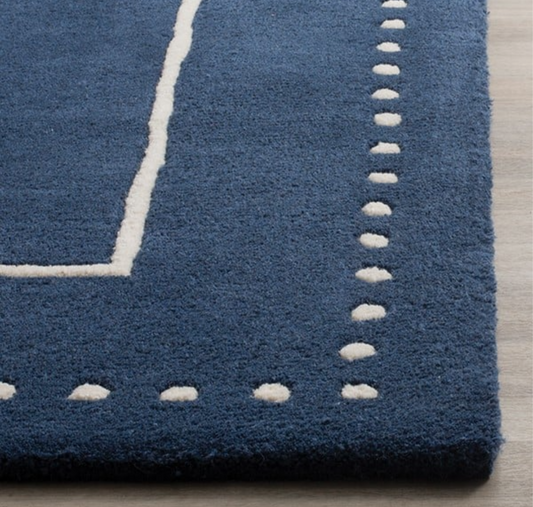 Classic Navy Blue Wool Area Rug with White Border – Handwoven Modern Geometric Carpet for Living Room, Bedroom & Office Décor