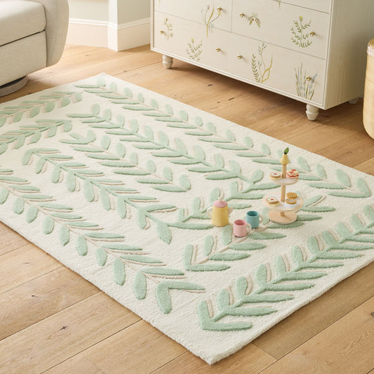Botanical Hand-Tufted Rug | Green Leaf Pattern Modern Area Carpet | Nature Inspired Accent Rug for Living Room, Bedroom & Entryway