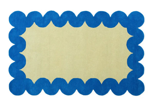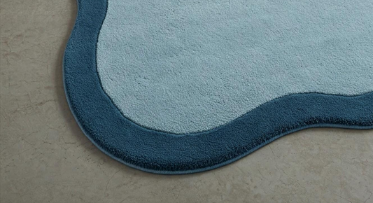 Blue Irregular Wavy Edge Area Rug – Soft Modern Carpet for Kids Room, Nursery, or Bedroom – Unique Playful Floor Mat