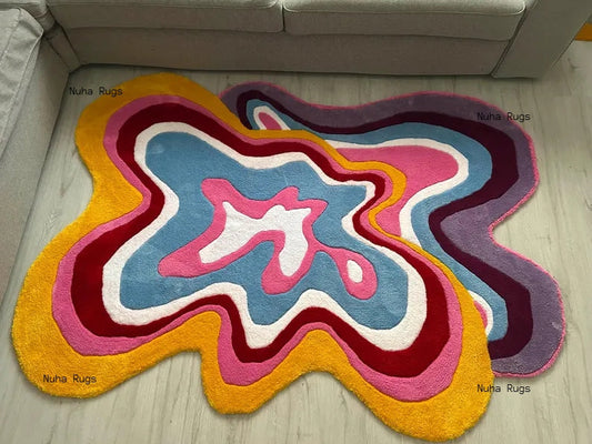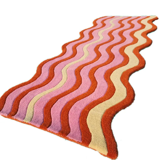 Contemporary Abstract Area Rug | Hand-Tufted Wool Carpet with Modern Wavy Design for Living Room & Bedroom