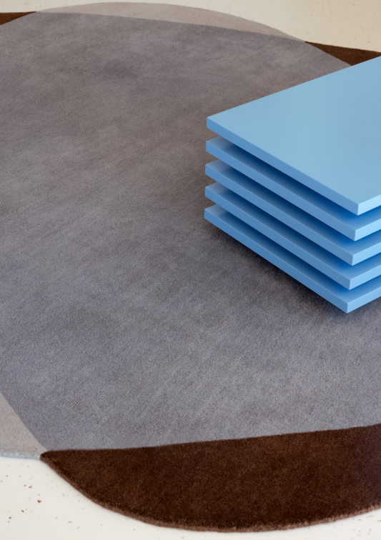 Contemporary Organic Shape Area Rug – Overlapping Blue, Brown & Gray Abstract Design for Modern Living Room & Bedroom Décor
