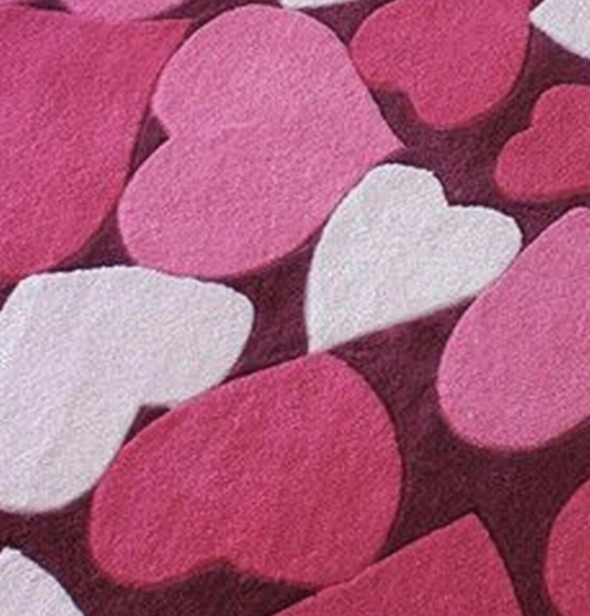 Cute Heart Shaped Carpet Rug | Pink & White Love Design | Soft Bedroom Mat for Girls & Kids Room