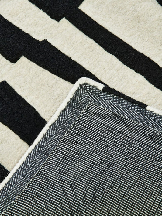 Modern Black and White Abstract Area Rug – Hand-Tufted Wool Carpet with Bold Geometric Pattern for Living Room, Bedroom & Office Decor