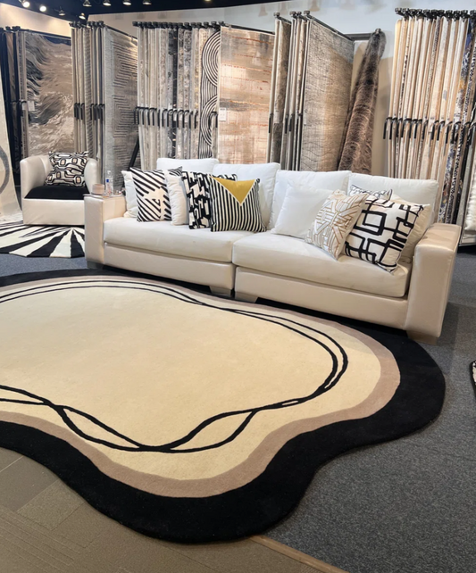 Modern Abstract Organic Shape Hand Tufted Rug – Black, White & Beige Contemporary Art Carpet, Irregular Statement Area Rug