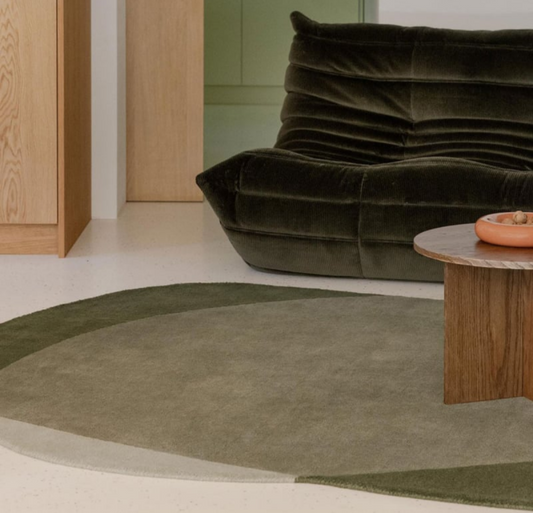Modern Abstract Green Hand-Tufted Rug | Unique Organic Shape Carpet for Living Room, Bedroom & Home Decor