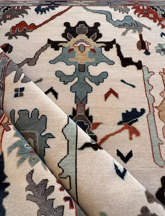 Ivory Oushak Area Rug – Hand Knotted Turkish Wool Carpet for Living Room Décor