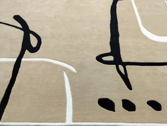 Modern Beige Abstract Area Rug – Minimalist Geometric Black & White Line Design, Soft Hand-Tufted Carpet for Living Room, Bedroom & Office Décor