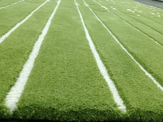 Green Geometric Line Area Rug – Modern Hand-Tufted Carpet with White Diamond & Stripe Pattern for Living Room, Bedroom & Contemporary Home Décor