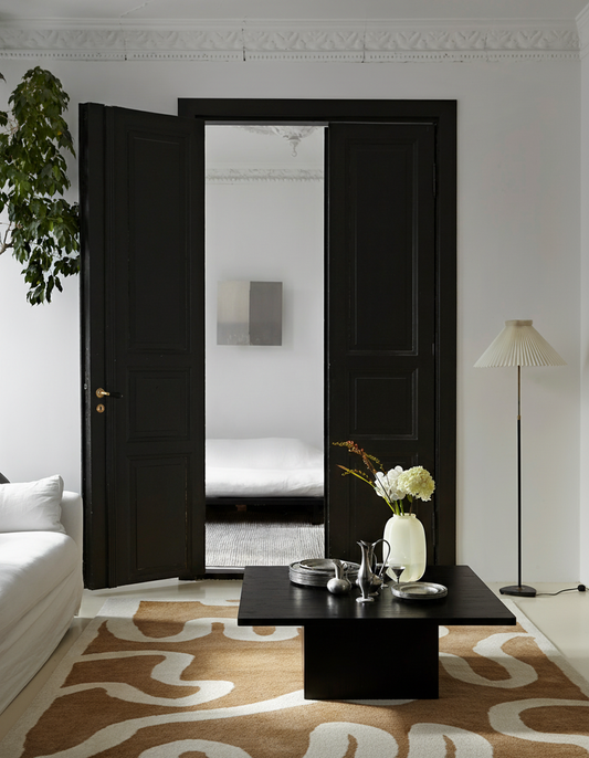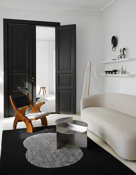 Hand Tufted Black & White Abstract Rug, Modern Minimalist Area Rug, Neutral Handmade Wool Rug, Contemporary Living Room Carpet, Scandinavian Decor Rug