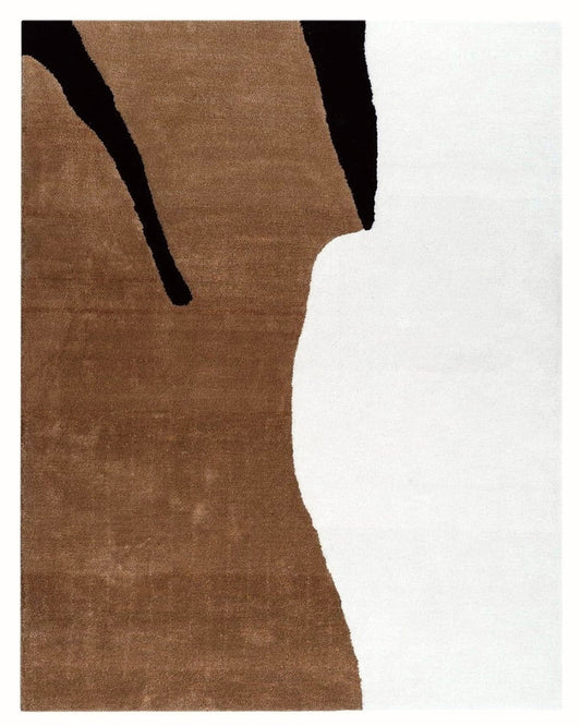 Modern Abstract Hand Tufted Wool Rug, Brown Black Ivory Area Rug, Contemporary Minimalist Carpet, Scandinavian Living Room Rug, Handmade Designer Rug