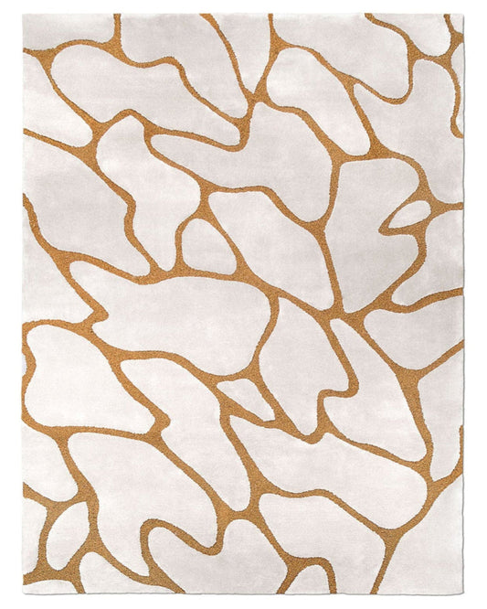 Hand Tufted Abstract Rug, Modern Cream & Gold Wool Rug, Luxury Contemporary Area Rug, Minimalist Living Room Rug, Handmade Designer Carpet