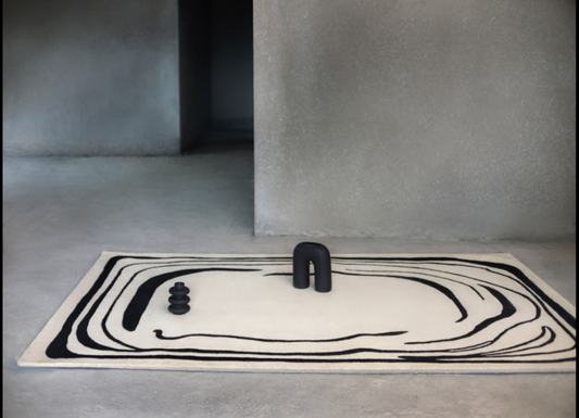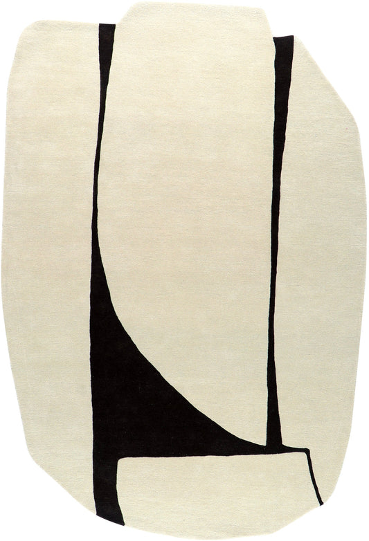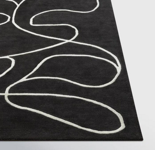 Modern Abstract Hand-Tufted Wool Rug – Black and Beige Artistic Carpet for Living Room or Bedroom
