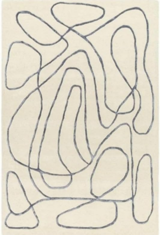 Modern Abstract Line Art Rug | Hand-Tufted Ivory Black Carpet for Living Room Decor