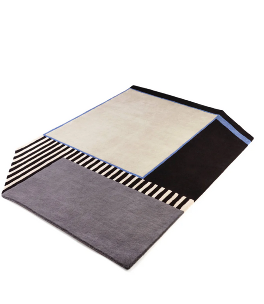 Modern Abstract Rug | Hand-Tufted Wool Carpet | Blue Irregular Shaped Rug for Living Room