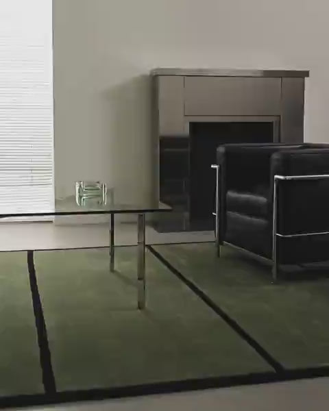 Handmade Olive Green Wool Area Rug – Modern Minimalist Striped Carpet for Living Room, Bedroom & Office