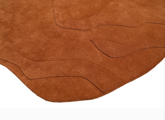 Hand Tufted Irregular Abstract Rug – Modern Terracotta Organic Shape Wool Area Rug for Living Room, Contemporary Designer Carpet