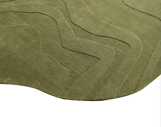 Modern Abstract Hand Tufted Rug, Green Organic Shape Rug, Handmade Wool Area Rug, Contemporary Living Room Rug, Minimalist Designer Carpet