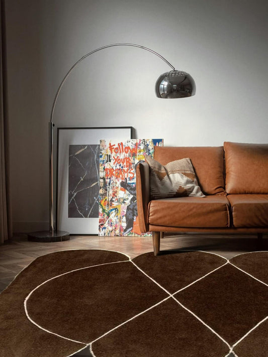 Modern Brown Hand Tufted Rug – Geometric Abstract Wool Area Rug, Scandinavian Minimalist Carpet, Luxury Living Room Bedroom Decor, Contemporary Handmade Rug